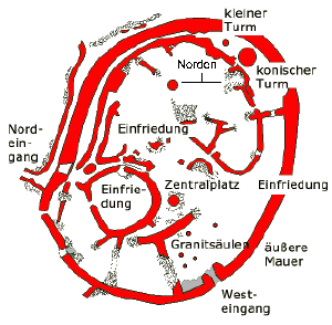 und Mauern wurden völlig ohne Mörtel, nur durch übereinander